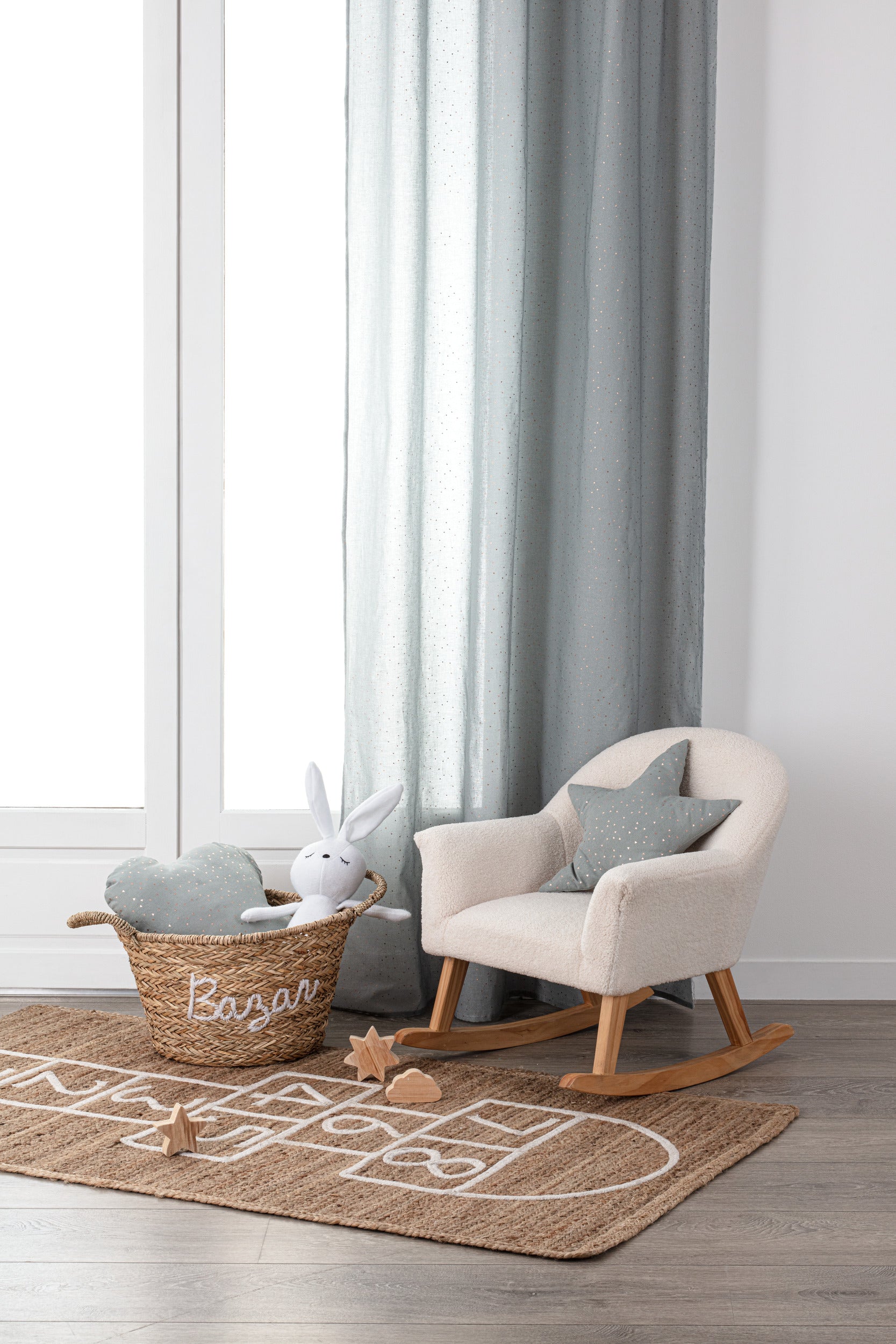 Лека и практична, тази прозрачна детска завеса комбинира издръжливостта на полиестера с мекотата на памука, а декоративният фолио принт добавя стилен акцент. Идеална за създаване на приятна, светла среда в стаята, придавайки личен почерк на декора без да блокира дневната светлина. Перфектна за родители, които търсят функционален и естетичен избор за детска стая и други жилищни пространства.