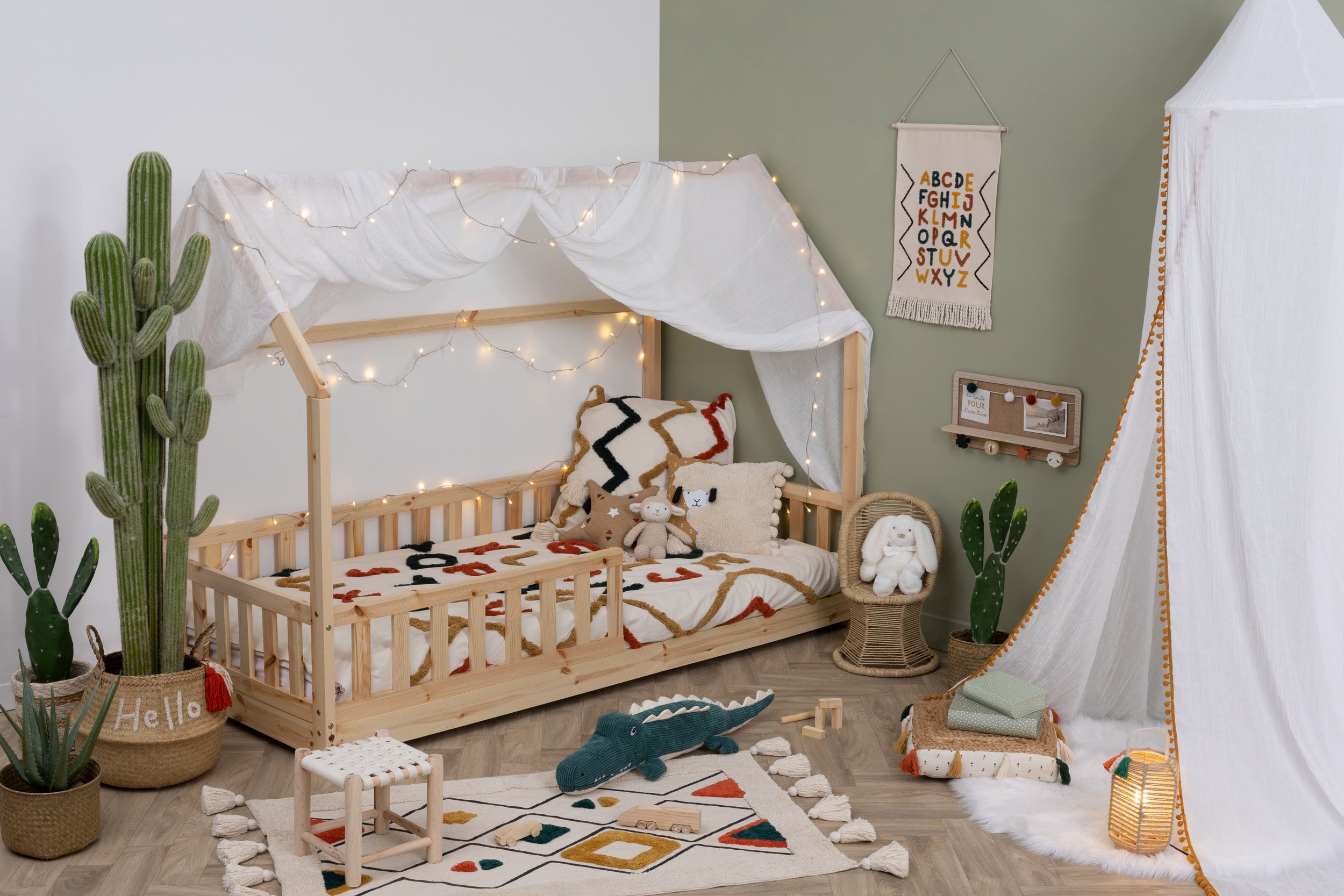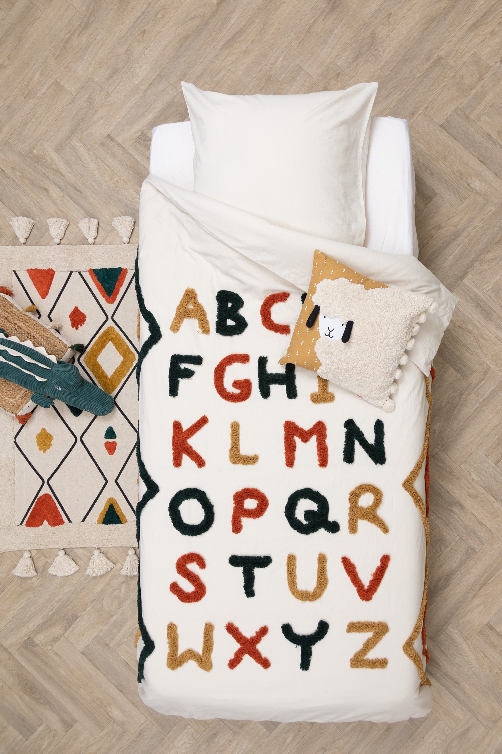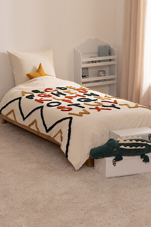Детският спален комплект atmosphera е изработен от мек памук и осигурява комфортен и спокоен сън. Семплият дизайн позволява лесно съчетаване с всякакъв интериор и може да се комбинира с цветни възглавници и аксесоари за повече настроение в детската стая.