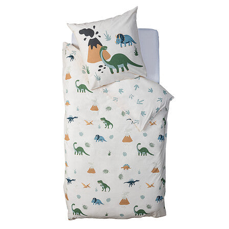 Детският спален комплект Dino е изработен от мек памук и осигурява комфортен и спокоен сън. Семплият дизайн позволява лесно съчетаване с всякакъв интериор и може да се комбинира с цветни възглавници и аксесоари за повече настроение в детската стая.