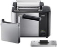 - 13 нива на изпичане: Тостерът е оборудван с прогресивен електронен контрол на степента на изпичане; можете да избирате между 13 различни нива на печене, за да отговарят на всичките ви нужди и хлябове; изберете степента на изпичане по всяко време; оптимално запичане от двете страни