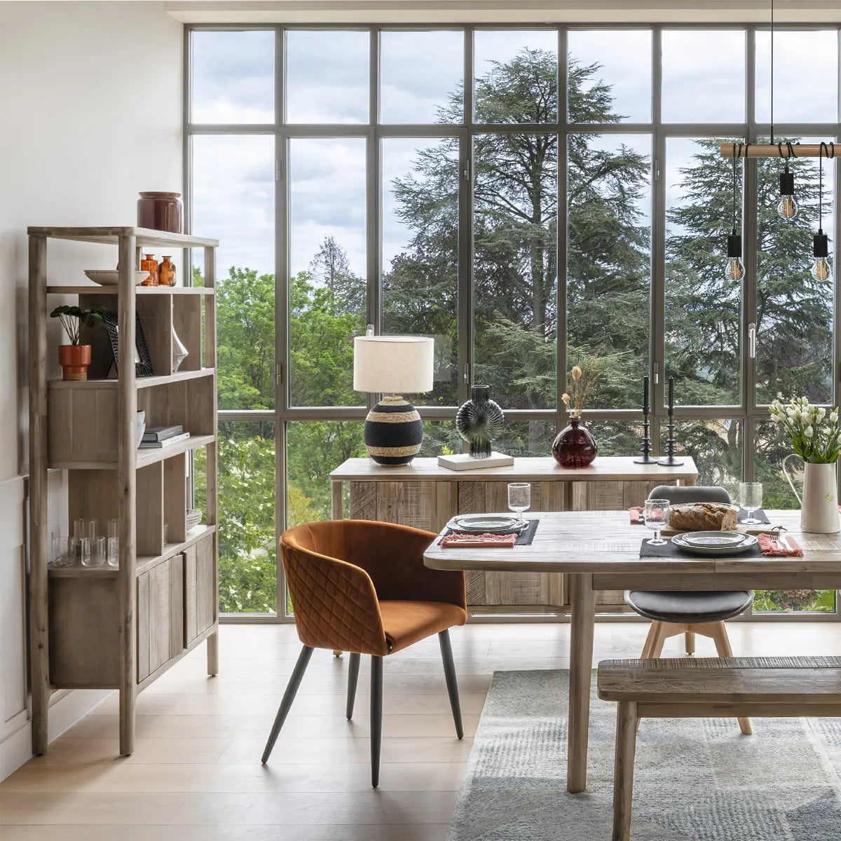 Елегантна библиотека, изработена от масивна акация, която съчетава естествена визия и стабилност. Разполага с 4 рафта с различна височина (34,5 см / 25 см / 30,3 см / 17,2 см), осигуряващи практично пространство за подреждане на книги и декорация.
