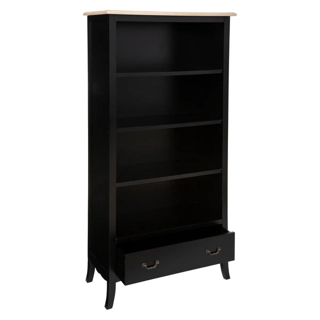 Функционална библиотека с изчистен дизайн, изработена от MDF. Разполага с 4 просторни рафта (височина 31 см всеки), които осигуряват достатъчно място за подреждане на книги, декорация или кутии за съхранение.