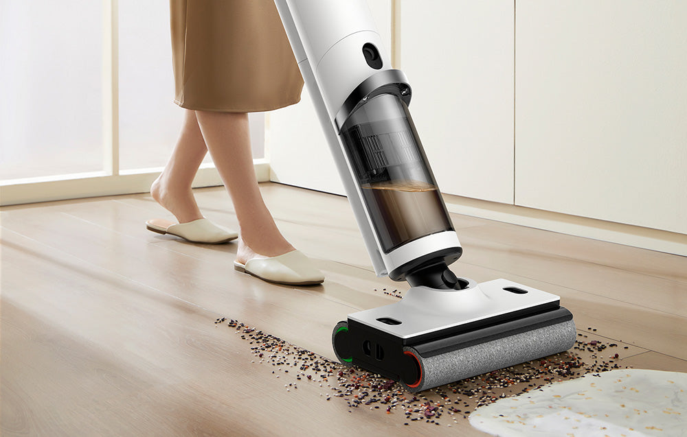 Едновременно почистване и миене: Deerma DEM-VX910W ви позволява да премахвате сухи и мокри замърсявания едновременно. С мощност на засмукване до 16,000 Pa, прахосмукачката лесно се справя дори с най-упоритите замърсявания като прах, трохи и косми.
