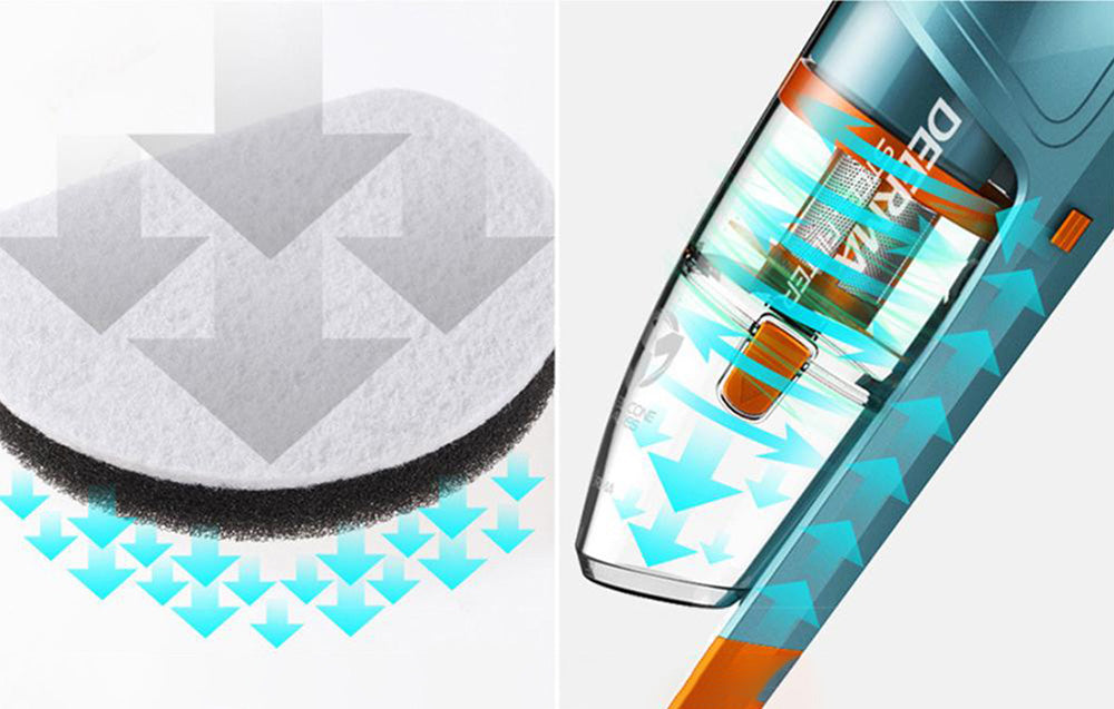 Вашето тайно оръжие срещу мръсотия С Deerma DX900 бързо и лесно ще се отървете от прах, пърхот, полени, бактерии и акари. Перфорираният стоманен филтър ефективно задържа замърсяванията и алергените. Мощната въртяща сила моментално насочва отпадъците в контейнера, който лесно можете да отстраните, изпразните и измиете. Ефективността на филтрацията се подобрява благодарение на независим въздушен канал и ъгъл на изхода на въздуха от 90° и 135°. Всичко това ви помага да създадете чиста и здравословна среда във всяка стая на дома ви.