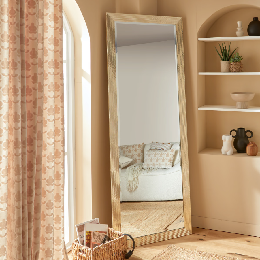 Елегантното стенo огледало Gemma впечатлява със своя изискан златен рамков дизайн и големи размери. Може да се монтира хоризонтално или вертикално, в зависимост от пространството и предпочитанията. Изработено е от PS рамка и закалено стъкло с дебелина 4,5 мм, осигуряващо издръжливост и кристален отблясък.