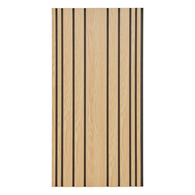 Декоративният панел Colva е практично и елегантно решение за съвременния интериор. Изработен от MDF с текстурирано покритие в светъл дъбов ефект и черна филцова основа от рециклиран полиестер, той съчетава стил и функционалност. Ламелите с различна ширина и дебелина 2,1 см осигуряват акустична изолация, като намаляват ехо ефекта в помещението.