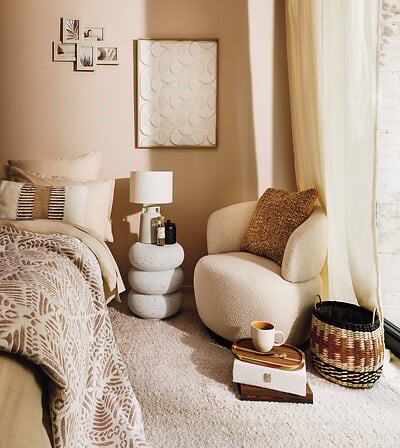 Кресло Sileo с въртяща се основа, размери 73,5 x 71,5 x 72,5 см и тегло 16 кг, изработено от полиестер, полиуретанова пяна и шперплат. Меката букле тапицерия в нюанс глина придава модерен и уютен характер, а пълнежът от пяна гарантира комфорт при сядане. Конструкцията е със сертификат FSC, което гарантира устойчив и отговорен произход на дървесните материали. Въртящият механизъм осигурява функционалност и удобство, правейки креслото стилен избор за всекидневна, кабинет или зона за релакс.