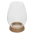 Свещник с диаметър 13,5 см и височина 18,5 см, изработен от комбинация естествено дърво и прозрачно стъкло. Елегантен и универсален декоративен акцент, подходящ за създаване на уютна атмосфера у дома.