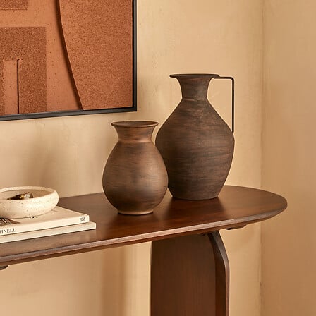 Ваза с височина 20 см и диаметър 15 см, изработена от стомана с ефект „антик“. Елегантен декоративен акцент, подходяща за свежи или сухи цветя и за придаване на характер на интериора.