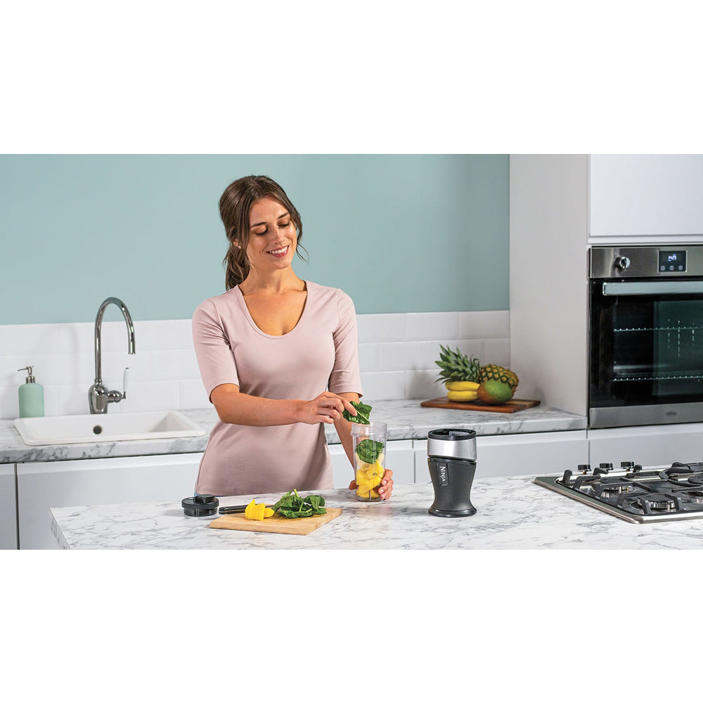 Този компактен Ninja Blender & Smoothie Maker съчетава мощен 700-ватов мотор с прецизни остриета Ninja, които лесно смесват цели плодове и зеленчуци, ядки, семена и дори лед. В комплект с две чаши. Не съдържа BPA и е съвместим със съдомиялната машина. Лесно е да се насладите на любимите си напитки в движение.