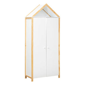 Детски гардероб с изчистен дизайн, наподобяващ малка къщичка, разполагащ с 4 рафта и 1 тръба за дрехи на закачалки, осигуряващи обширно пространство за съхранение и добра организация. Може да бъде комбинирана с другите мебели от нашата колекция "Kima".